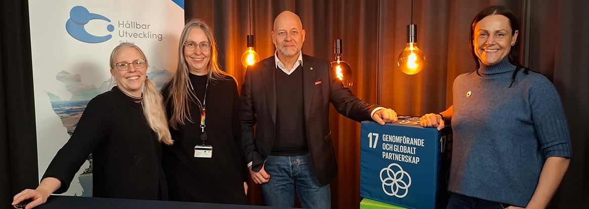 På bilden syns: Marja Boström Hållbar Utveckling Skåne tillsammans med Susanne Dahlberg Länsstyrelsen, Anders Källman VD Multivac och Lotte Nilsson Sparbanken Syd